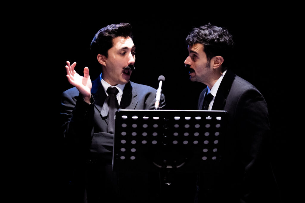 La obra utiliza un dispositivo inspirado en los antiguos estudios de radioteatro de los años 60. Todos los sonidos son creados en vivo por los intérpretes —los pasos, los golpes, los besos, la lluvia, los efectos de ambiente— mientras el soundtrack grabado refuerza la atmósfera emocional de cada escena, apoyado en la reinterpretación de siete canciones de música criolla peruana desde la perspectiva queer. Esta combinación entre lo analógico y lo performativo sitúa la acción en un territorio ambiguo entre la radio y el teatro, entre la ilusión sonora y la presencia física. El escenario se convierte así en un espacio de invención constante, donde el público asiste a la construcción de una ficción en tiempo real, revelando los mecanismos de lo audible y lo visible.