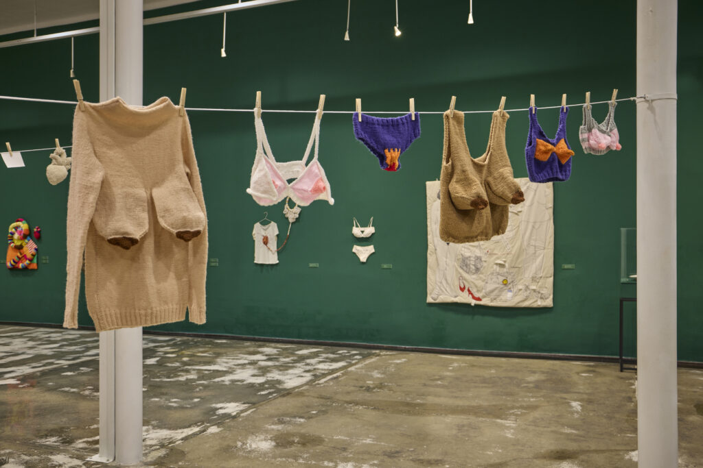 Bajo la curaduría de Giuliana Vidarte, la muestra reúne una selección de pinturas, dibujos, tejidos, bordados, instalaciones y performances realizadas entre 2017 y 2025. Este conjunto de obras propone una reflexión íntima y colectiva sobre las maternidades contemporáneas, las obligaciones de género impuestas a los sujetos femeninos, los vínculos familiares y las memorias heredadas a través de generaciones.