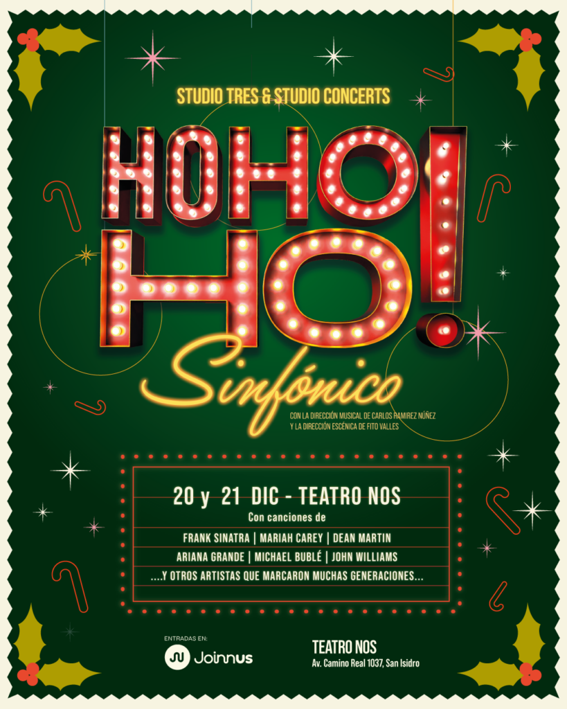 Los días sábado 20 y domingo 21 de diciembre, a las 4:00 p.m. y 8:00 p.m., el escenario del Teatro NOS se convertirá nuevamente en un espacio de celebración con Ho Ho Ho Sinfónico, un espectáculo que reúne lo mejor de los clásicos navideños en la majestuosidad de una orquesta sinfónica y la energía vibrante de una big band. Las entradas ya están disponibles en Joinnus.