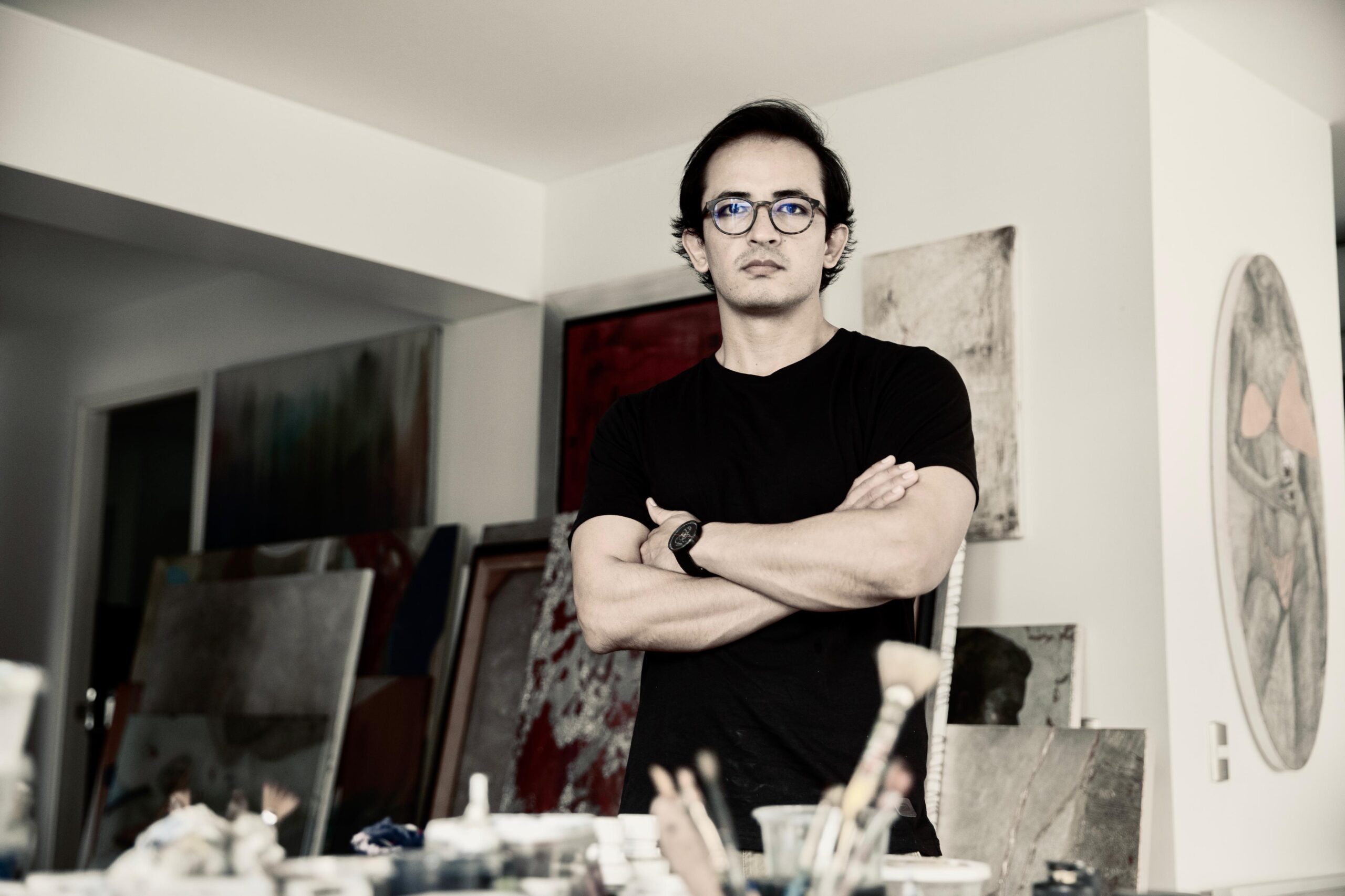 En esta tensión se sitúa el trabajo de David Habibzadeh. Luego de años de explorar la abstracción, el artista regresa a la figuración con una mirada crítica y profundamente emocional. Sus retratos no representan personas reales, sino figuras posibles, que surgen desde lo simbólico y lo expresivo. Cada obra intenta capturar un estado psíquico, una huella del tiempo, una emoción contenida en la materia pictórica. El rostro, más que una superficie, se convierte en un campo de batalla emocional.