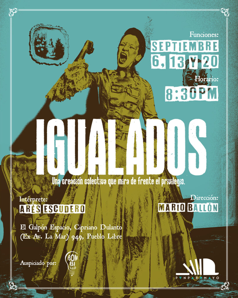 “Igualados busca generar una experiencia colectiva y un pensamiento crítico. A través de acciones que conllevan a la clasificación arbitraria de las personas y la reorganización prejuiciosa de los cuerpos en el espacio, tenemos la intención de incitar reacciones, reflexiones y hasta declaraciones por parte del público”, nos dice el director de la obra Mario Ballón. A través de monólogos que recurren a la biografía de la actriz (Arés Escudero) y de las dinámicas que se realizarán con los asistentes, se pretende abordar en escena la problemática de la división de clases en nuestro país, enfocándose en la posición de superioridad que asumen y que se les concede a personas de la clase alta limeña: “reconociendo el lugar que ocupamos como artistas escénicos de una clase privilegiada, queremos hacer una autocrítica con un tono sarcástico y con humor. Para ridiculizar nuestra pituquería limeña y cuestionar conductas normalizadas. ¿bajo qué criterios le damos valor a las cosas?, ¿a qué llamamos artesanía y a qué arte?, ¿qué es comida gourmet y qué comida popular?”, destaca la bailarina y performer.