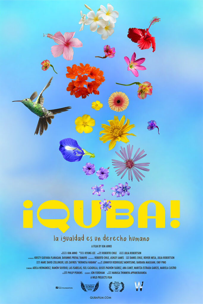 “¡Quba!”, de la directora estadounidense-japonesa Kim Anno, es un documental que, evidentemente, tiene la venia oficial, ha sido filmada “libremente” en La Habana y aparece entrevistada la hija de Raúl Castro, Mariela (quien ha encontrado un nicho profesional importante en ocuparse del tema lgtbiq+ en el Centro Nacional de Educación Sexual (Cenesex), el que dirigirá hasta el fin de sus días), halagando a su madre por ser una «pionera» en el tema; también es evidente que los activistas entrevistados son oficialistas, no tienen ninguna queja contra el gobierno cubano y algunos muestran su admiración a Fidel Castro y viven agradecidos a la revolución y se adhieren a ella en la situación en la que se encuentra actualmente, es decir, con las problemáticas de hambre y carencias de servicios básicos continuos que hace sufrir a su población. Algo que también se hace evidente son los desangelados testimonios familiares que nos muestran, como el activista gay que rechaza las muestras de cariño de su madre o la fría relación de la pareja de lesbianas, también activistas.