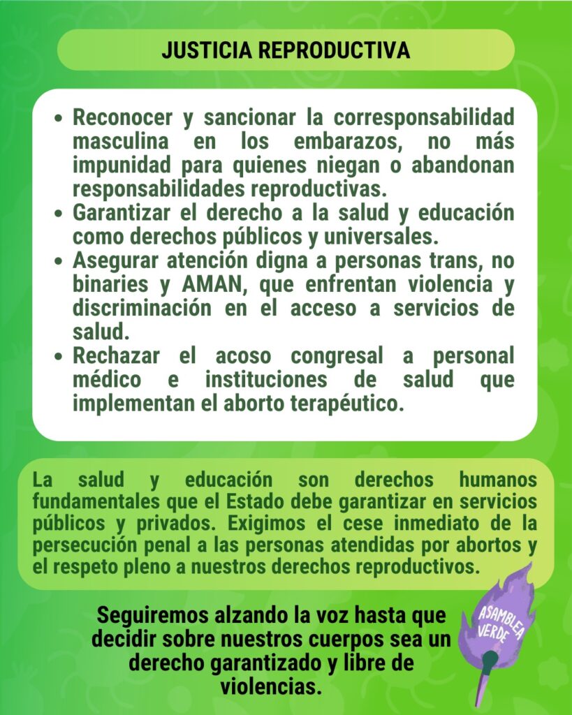 Asamblea Verde: «Se debe garantizar el aborto a las personas que lo necesiten para salvar sus vidas»